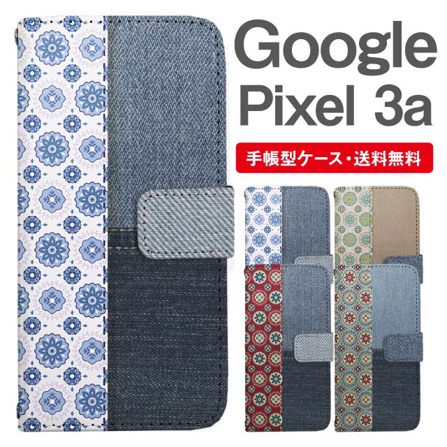 スマホケース 手帳型 Google Pixel3a グーグル ピクセル 携帯ケース カバー 送料無料 デニム柄 フラワー ドット agesugi_ssm