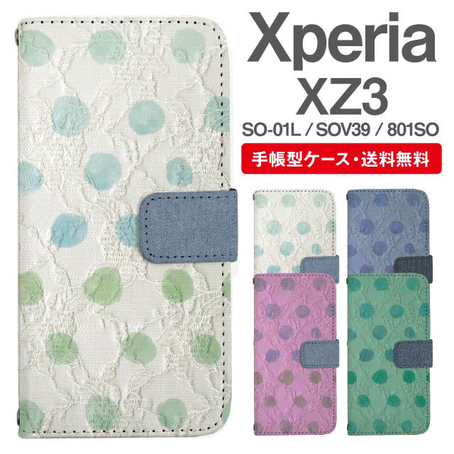 スマホケース 手帳型 Xperia XZ3 エクスペリア SO-01L SOV39 801SO 携帯ケース カバー 送料無料 ドット レース柄 agesugi_ssm