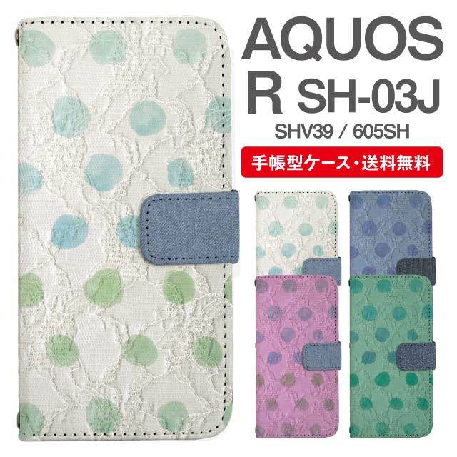 スマホケース 手帳型 AQUOS R アクオス SH-03J SHV39 605SH 携帯ケース カバー 送料無料 ドット レース柄 agesugi_ssm
