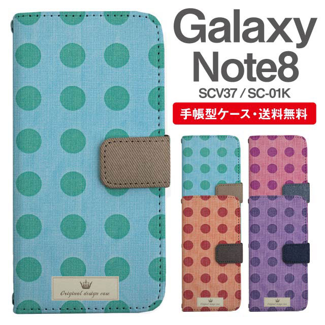 スマホケース 手帳型 Galaxy Note8 ギャラクシー SC-01K SCV37 携帯ケース カバー 送料無料 ドット 水玉 ポルカドット agesugi_ssm