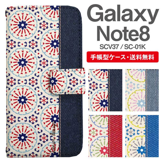 スマホケース 手帳型 Galaxy Note8 ギャラクシー SC-01K SCV37 携帯ケース カバー 送料無料 タイル柄 パターン 幾何学模様 agesugi_ssm