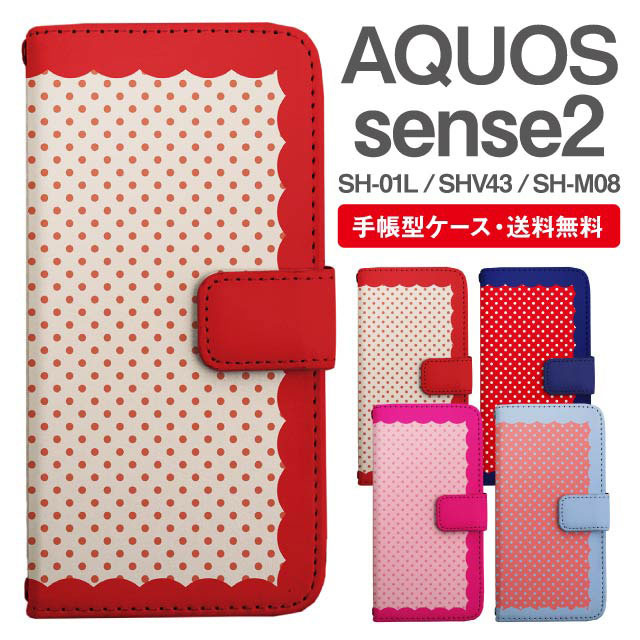 スマホケース 手帳型 AQUOS sense2 アクオス SH-01L SHV43 SH-M08 携帯ケース カバー 送料無料 ドット 水玉 agesugi_ssm