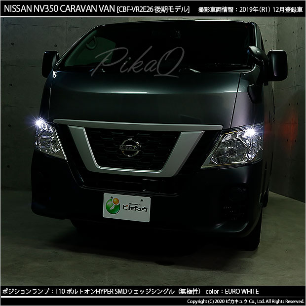 ニッサン NV350キャラバン[E26系 後期モデル] ハロゲンヘッドランプ付車対応ポジションランプ用LEDバルブ T10 ボルトオンHYPER SMDウェッジシングル球 LEDカラー:ユーロホワイト7200K 1セット2個入り | ||||