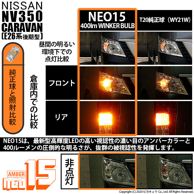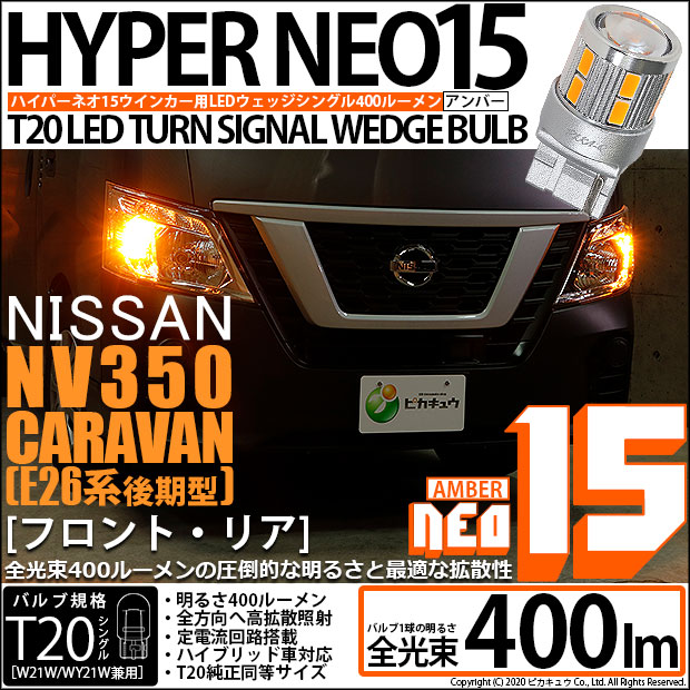 | ピカキュウ,LED専門店,LEDバルブ,LED,SMD,T20S,T20シングル,ターンシグナルランプ,ウインカーランプ,DC12V車,NEO15,アンバー,全光束400lm,定電流回路搭載,ハイブリッド車対応,ニッサン,NISSAN,nv350キャラバン,CARABAN,CARAVAN,E26系,E26系後期 |