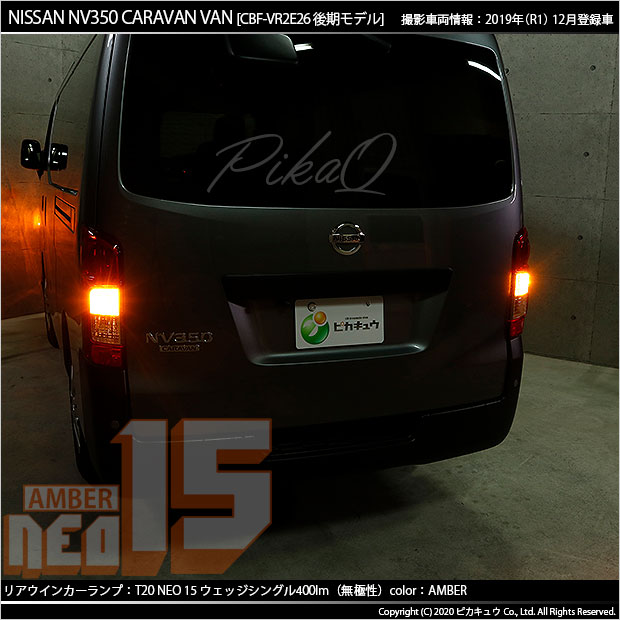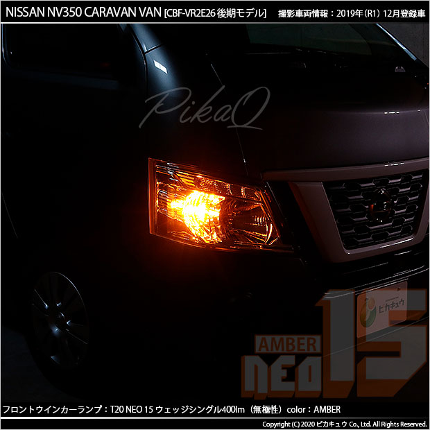 | ニッサン NV350キャラバン[E26系 後期モデル]ウインカーランプ用 LEDバルブ (フロント・リア対応) 全光束400ルーメン T20S LED TURN SIGNAL BULB 『NEO15』ウェッジシングル球 LEDカラー:アンバー 1セット2個入り | ||||