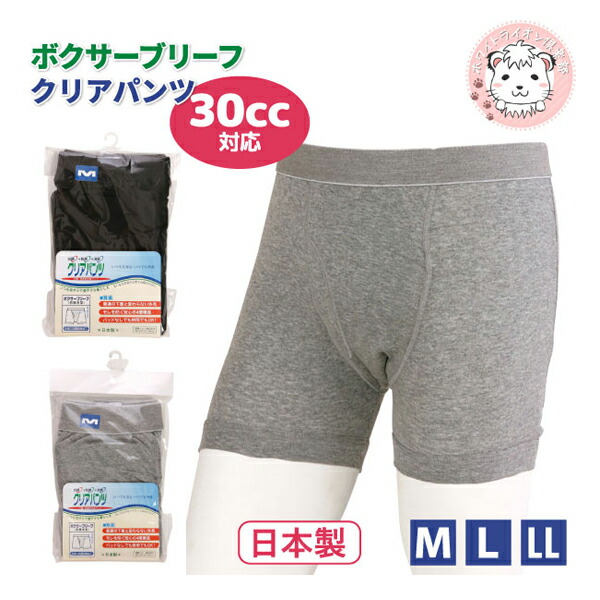 クリアパンツ ボクサーブリーフ 前開き 30cc 抗菌防臭 吸水 綿100% M/L/LL | 軽失禁 尿漏れ 失禁 介護 通院 メンズ 綿 失禁ボクサーパンツ ボクサー パンツ インナー