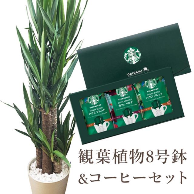 観葉植物 ユッカ 8号 + スターバックスコーヒー ギフトセット スタバ コーヒー ギフト おうち時間 家カフェ おうちカフェ 翌日届け お祝い 開店祝い 開業祝い 引っ越し祝い 新築祝い ギフト プレゼント