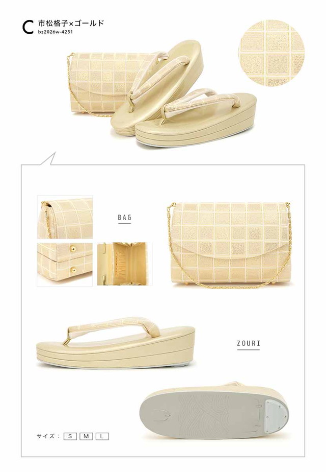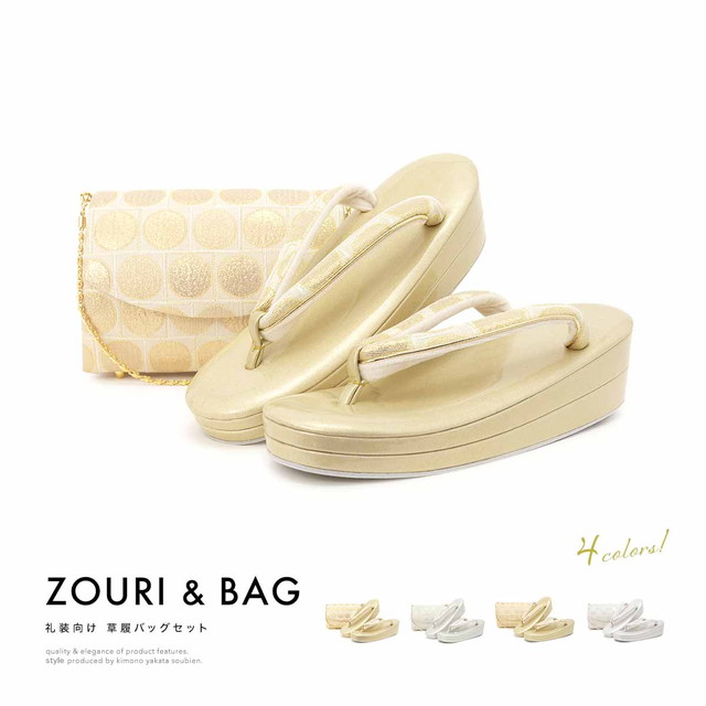 草履バッグセット 礼装 留袖 訪問着 フォーマル 金色 銀色 ラメ 水玉 市松格子 二枚芯 クラッチバッグ 2way 和洋兼用 日本製【Sサイズ】【Mサイズ】【Lサイズ】