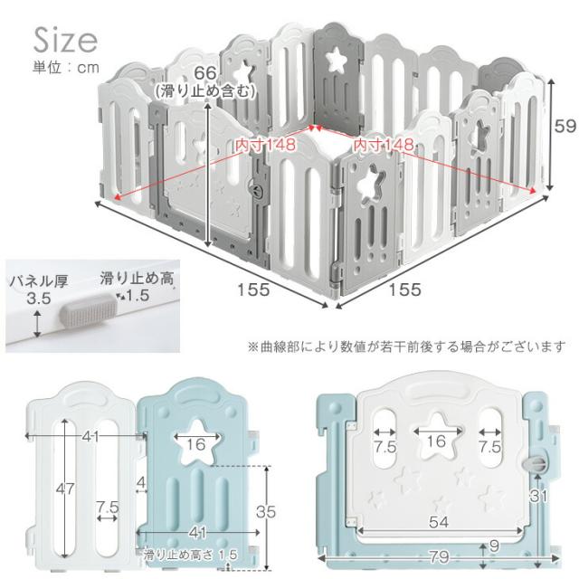 - 星型の窓がかわいいです。長方形にして内寸110×186cmといったところでした。 赤ちゃんが手足を隙間から出したりしてますが挟まることはなさそうです。 組み立ては簡単ですが、ジョイント部が硬くなかなか...
