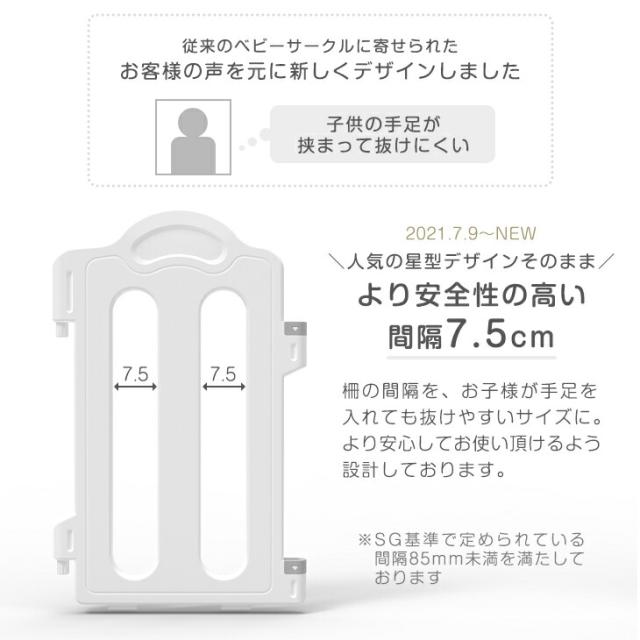 - 軽い。簡単。星が可愛い。 形はある程度自由にできます。滑り止めは微妙。 白い板は見通しが良いですが、ボールやおもちゃが通ってしまうのでそこからサークルの外にばんばん投げます。少し狭めなので半分くらいの...