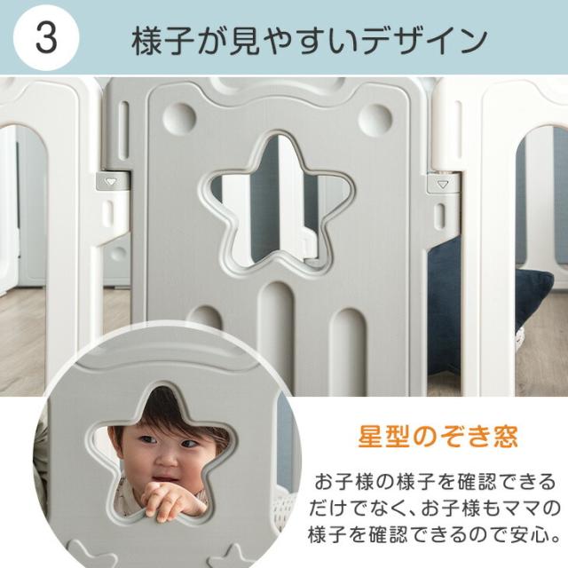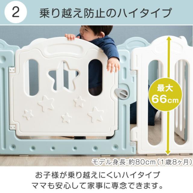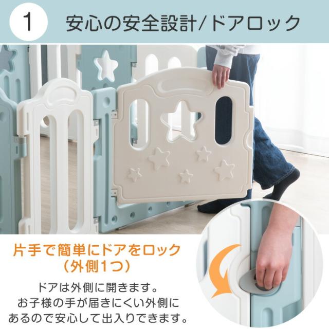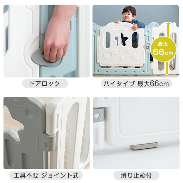ベビーサークル 扉付き ハイタイプ 15枚セット 簡単組立 ジョイント式 ドア 扉 ベビー サークル プレイペン プラスチック 赤ちゃん 大きい 大型 おしゃれ かわいい 北欧 シンプル 白 灰色 青 ホワイト