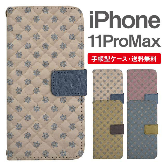 スマホケース 手帳型 iPhone 11 Pro Max アイフォン 携帯ケース カバー 送料無料 花柄 フラワー キルティング風 agesugi_ssm