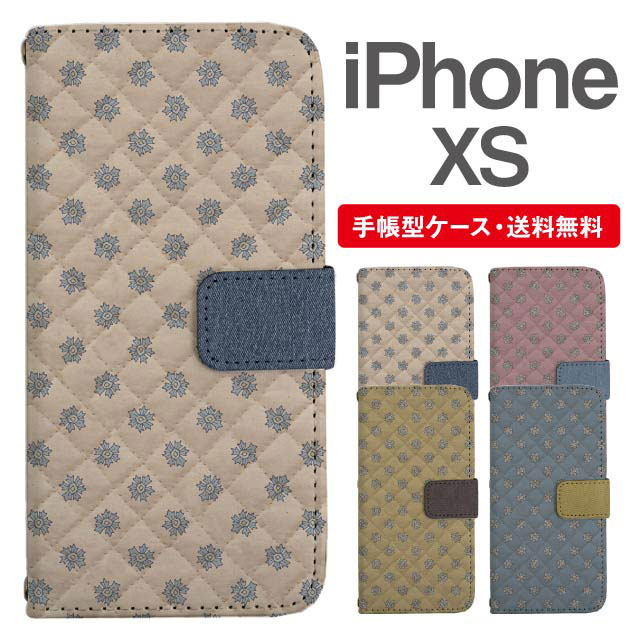 スマホケース 手帳型 iPhone XS アイフォン 携帯ケース カバー 送料無料 花柄 フラワー キルティング風 agesugi_ssm
