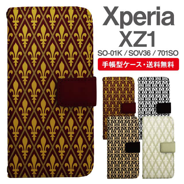 スマホケース 手帳型 Xperia XZ1 エクスペリア SO-01K SOV36 701SO 携帯ケース カバー 送料無料 フルール・ド・リス 百合の紋章 ユリ agesugi_ssm