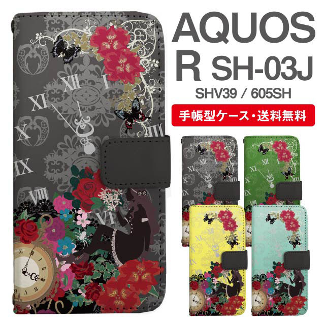 スマホケース 手帳型 AQUOS R アクオス SH-03J SHV39 605SH 携帯ケース カバー 送料無料 エレガント ゴシック フラワー agesugi_ssm