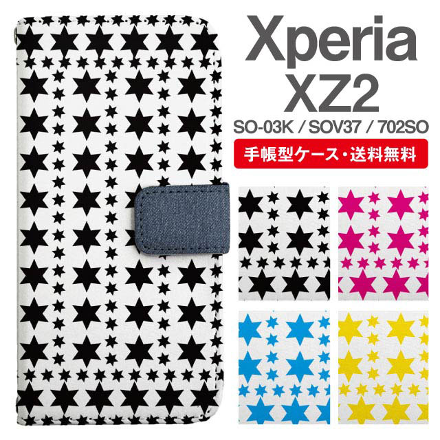 スマホケース 手帳型 Xperia XZ2 エクスペリア SO-03K SOV37 702SO 携帯ケース カバー 送料無料 スター 星柄 agesugi_ssm