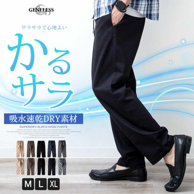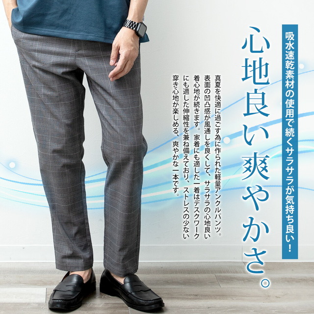 パンツ メンズ ストレッチ 涼しい 吸水速乾 ドライ ゆったり ワイド エアパンツ スリム 軽い チェック ルームウェア 部屋着 ゴムウエスト シンプル 無地 軽量 春夏 春 イージーパンツ 全10色 アンクル カジュアル きれいめ ウエストゴム