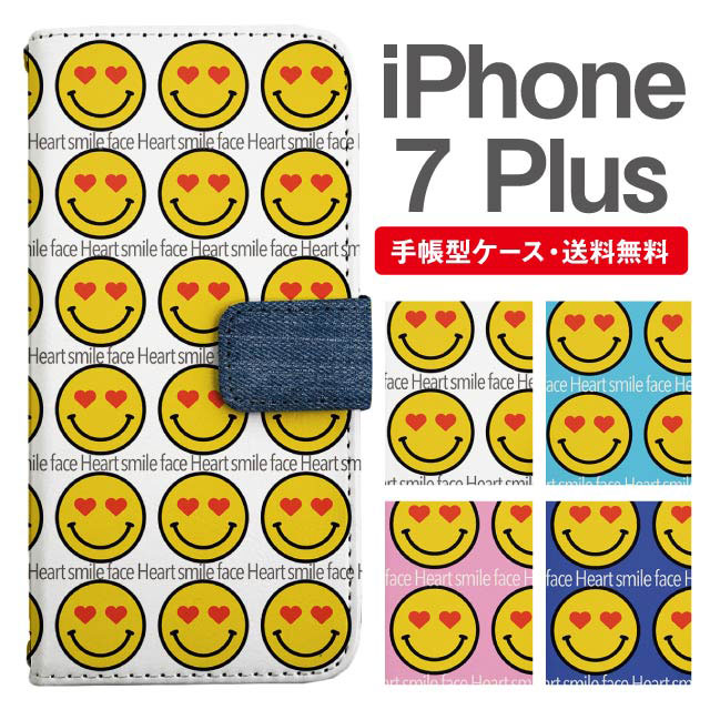 スマホケース 手帳型 iPhone7Plus アイフォン 携帯ケース カバー 送料無料 絵文字 ハート スマイリー ニコちゃん agesugi_ssm