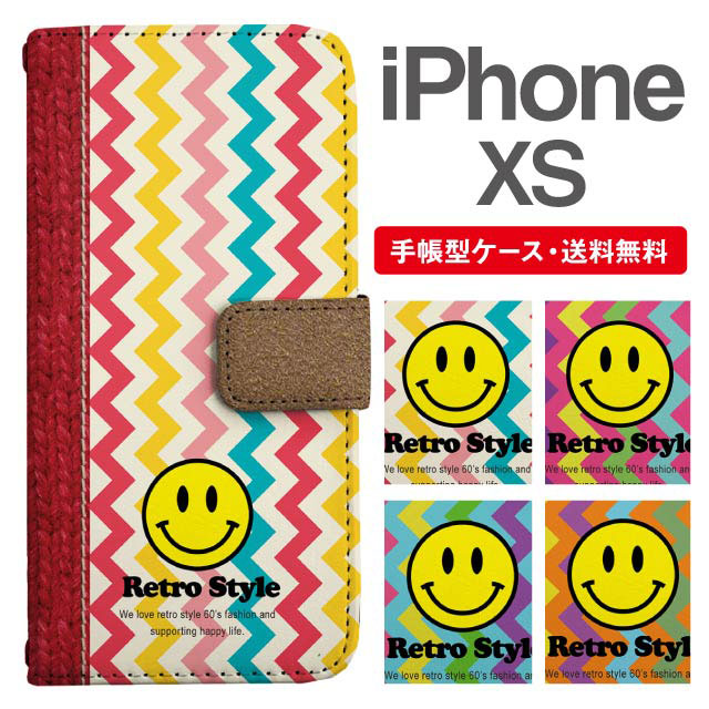スマホケース 手帳型 iPhone XS アイフォン 携帯ケース カバー 送料無料 シェブロン ジグザグ スマイリー ニコちゃん agesugi_ssm