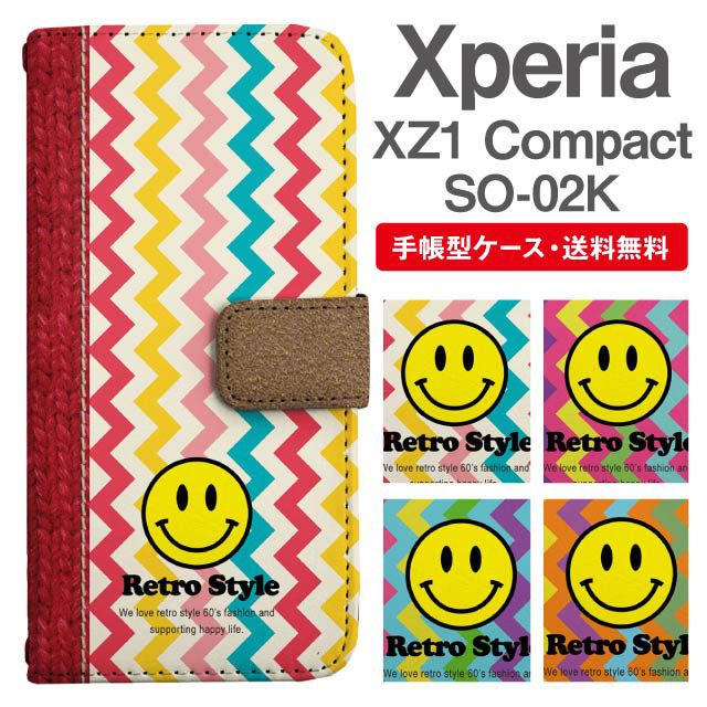 スマホケース 手帳型 Xperia XZ1 Compact エクスペリア SO-02K 携帯ケース カバー 送料無料 シェブロン ジグザグ スマイリー ニコちゃん agesugi_ssm