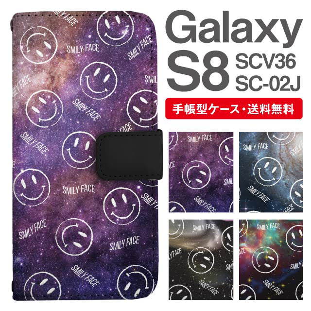 スマホケース 手帳型 Galaxy S8 ギャラクシー SC-02J SCV36 携帯ケース カバー 送料無料 スマイリー ニコちゃん 絵文字 コズミック 宇宙 agesugi_ssm