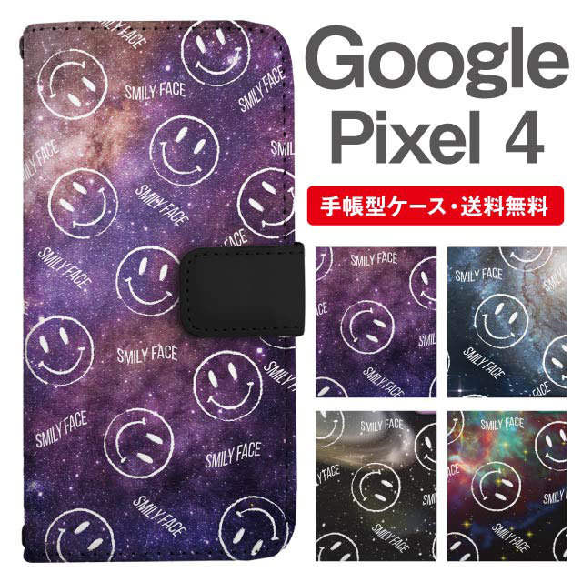 スマホケース 手帳型 Google Pixel4 グーグル ピクセル 携帯ケース カバー 送料無料 スマイリー ニコちゃん 絵文字 コズミック 宇宙 agesugi_ssm