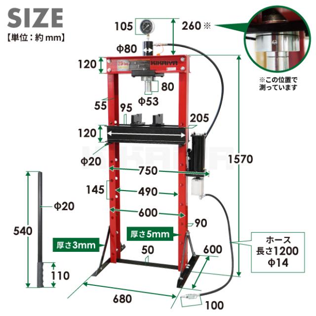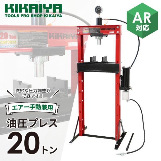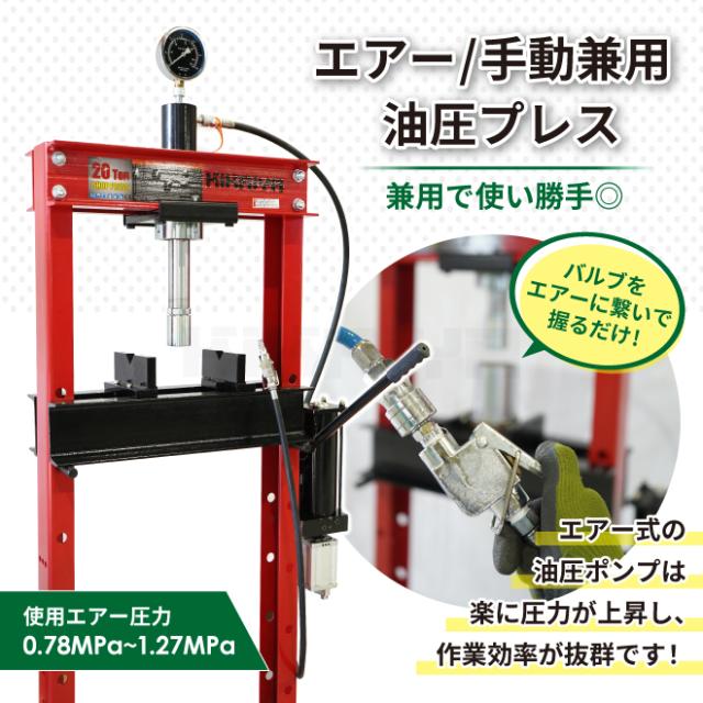 油圧プレス 20トン (エアー手動兼用) メーター付 門型プレス機 6ヶ月保証 KIKAIYA