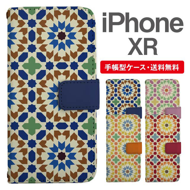 スマホケース 手帳型 iPhone XR アイフォン 携帯ケース カバー 送料無料 タイル柄 agesugi_ssm