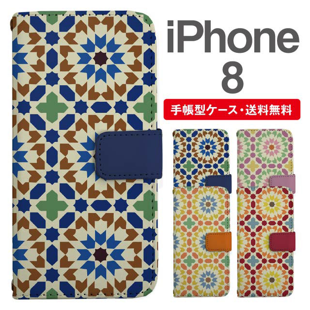スマホケース 手帳型 iPhone8 アイフォン 携帯ケース カバー 送料無料 タイル柄 agesugi_ssm