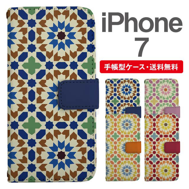 スマホケース 手帳型 iPhone7 アイフォン 携帯ケース カバー 送料無料 タイル柄 agesugi_ssm