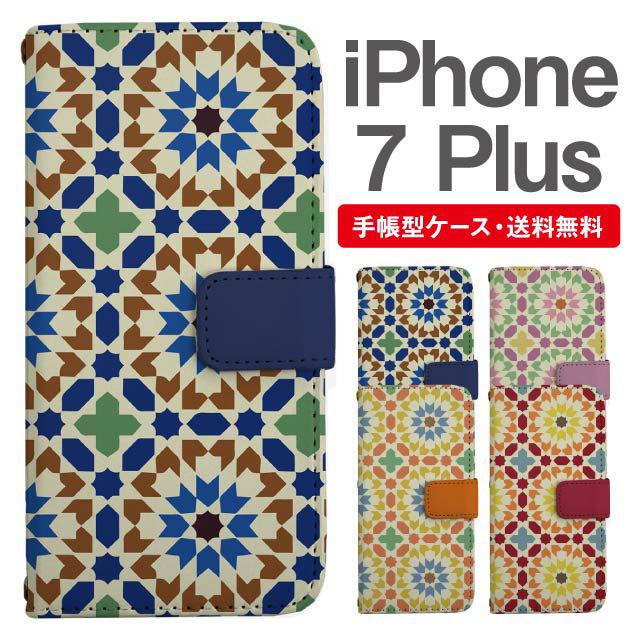 スマホケース 手帳型 iPhone7Plus アイフォン 携帯ケース カバー 送料無料 タイル柄 agesugi_ssm