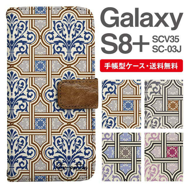 スマホケース 手帳型 Galaxy S8+ ギャラクシー SC-03J SCV35 携帯ケース カバー 送料無料 タイル柄 ボタニカル agesugi_ssm
