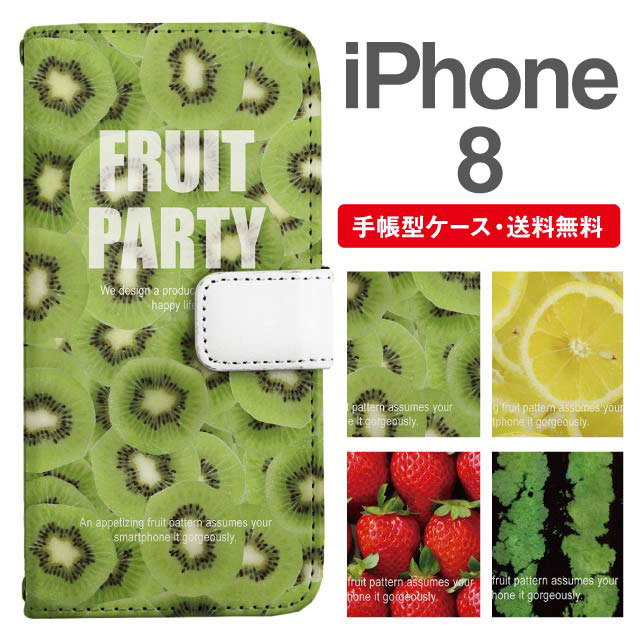 スマホケース 手帳型 iPhone8 アイフォン 携帯ケース カバー 送料無料 フルーツ柄 キウイ レモン いちご スイカ agesugi_ssm