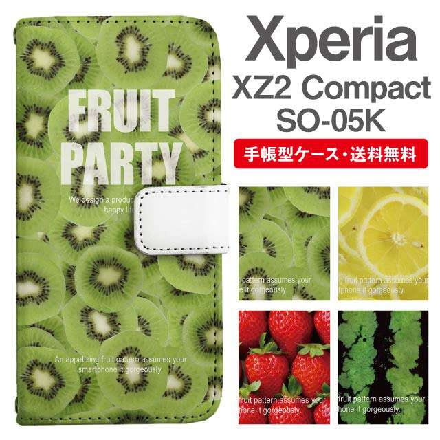 スマホケース 手帳型 Xperia XZ2 Compact エクスペリア SO-05K 携帯ケース カバー 送料無料 フルーツ柄 キウイ レモン いちご スイカ agesugi_ssm