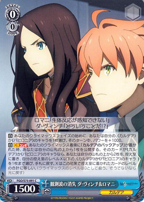 ヴァイスシュヴァルツ Fate/Grand Order -絶対魔獣戦線バビロニア- 観測波の消失 ダ・ヴィンチ&ロマ二 C FGO/S75-091 キャラクター カルデア 青