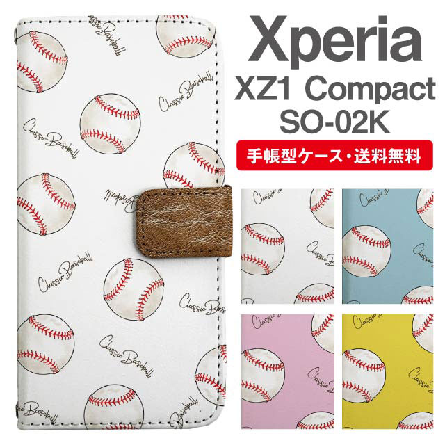 スマホケース 手帳型 Xperia XZ1 Compact エクスペリア SO-02K 携帯ケース カバー 送料無料 野球ボール agesugi_ssm