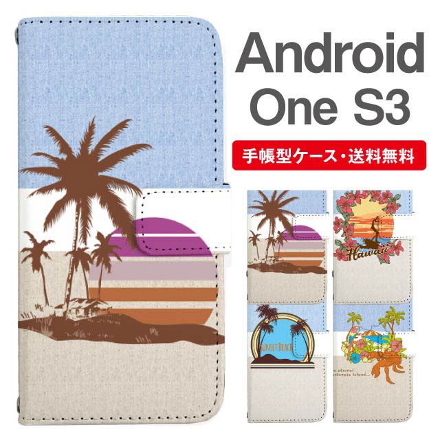 スマホケース 手帳型 Android One S3 アンドロイドワン 携帯ケース カバー 送料無料 ビーチ柄 サーフ ハワイアン agesugi_ssm