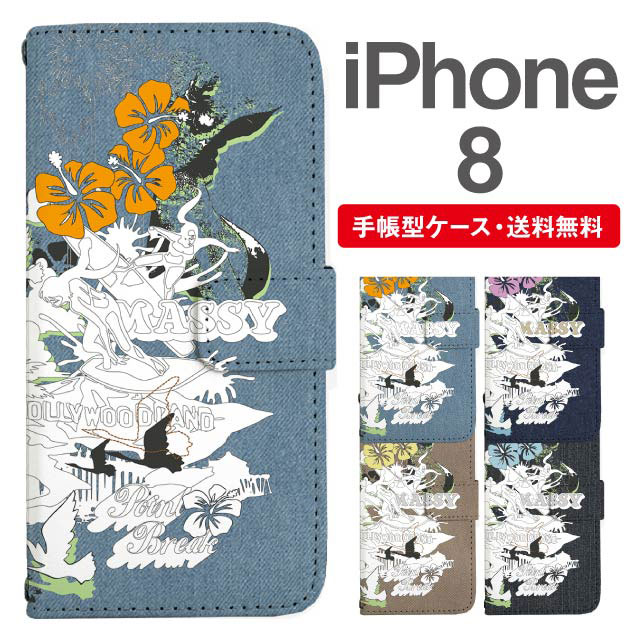 スマホケース 手帳型 iPhone8 アイフォン 携帯ケース カバー 送料無料 ビーチ柄 サーフ トロピカル ハワイアン agesugi_ssm