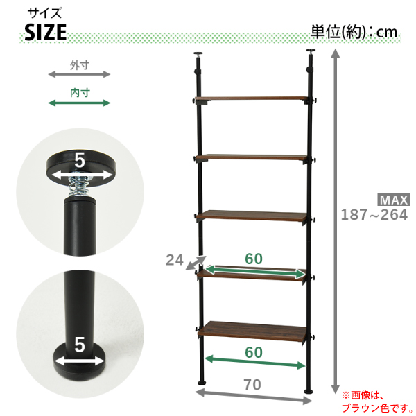 サイズ:(約)幅70×奥行24×高さ187〜264cm