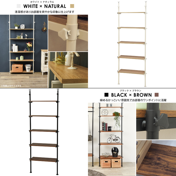 突っ張りラック (小) ホワイトナチュラル 幅70cm 5段ラック スチール ラック 収納棚 収納 突っ張り式 オープンラック 代引不可