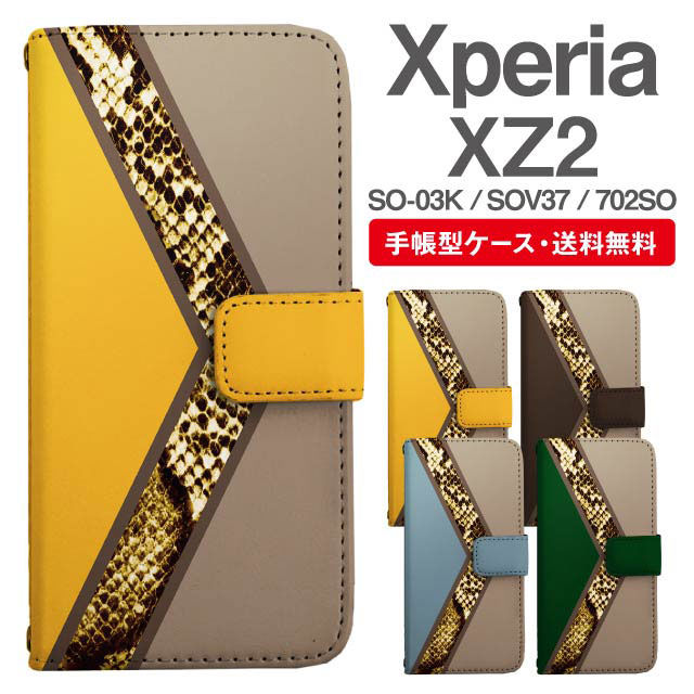 スマホケース 手帳型 Xperia XZ2 エクスペリア SO-03K SOV37 702SO 携帯ケース カバー 送料無料 パイソン 蛇柄 ヘビ柄 agesugi_ssm