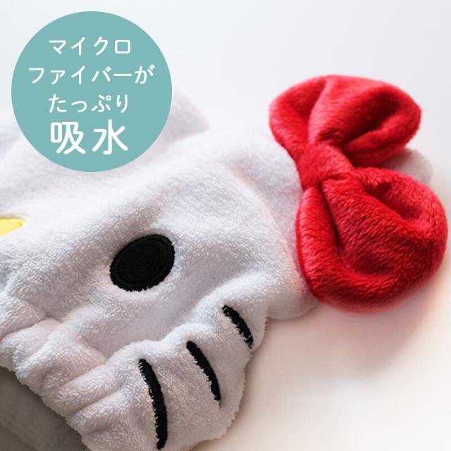 キティちゃんにかわいく変身しながら、濡れた髪をサッと吸水します。マイクロファイバー素材なので吸水力抜群です。お風呂上がりやスイミングのヘアドライに。