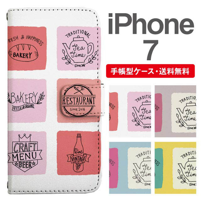 スマホケース 手帳型 iPhone7 アイフォン 携帯ケース カバー 送料無料 カフェ柄 ロゴ柄 agesugi_ssm