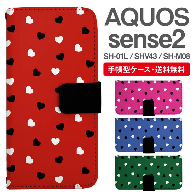 スマホケース 手帳型 AQUOS sense2 アクオス SH-01L SHV43 SH-M08 携帯ケース カバー 送料無料 ハート agesugi_ssm