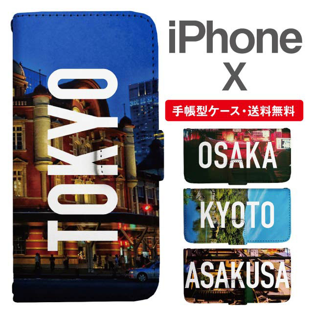 スマホケース 手帳型 iPhone X アイフォン 携帯ケース カバー 送料無料 写真 風景 東京 大阪 京都 浅草 agesugi_ssm