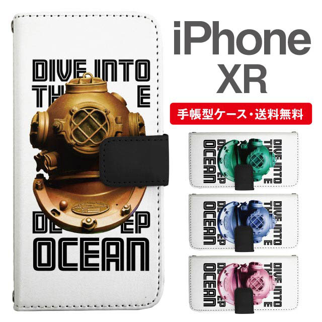 スマホケース 手帳型 iPhone XR アイフォン 携帯ケース カバー 送料無料 メッセージ レトロ 潜水ヘルメット agesugi_ssm