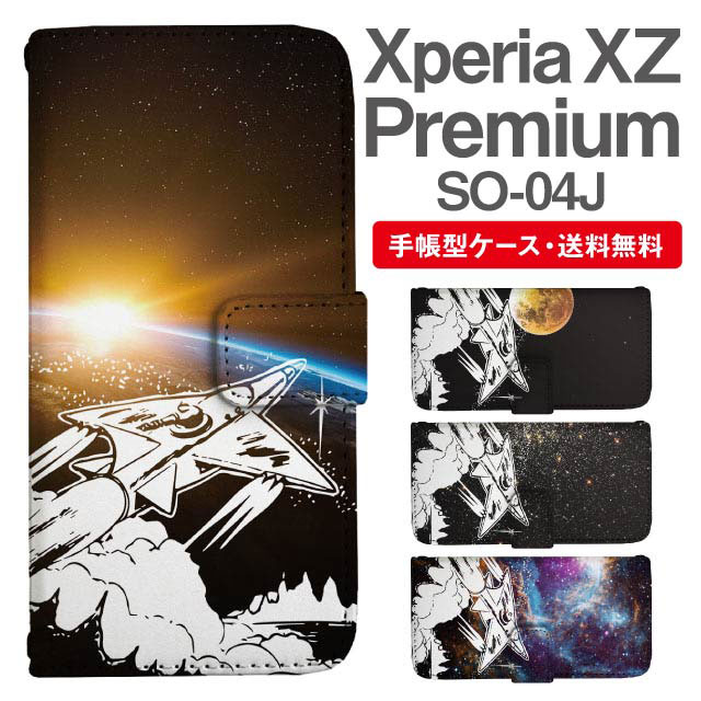 スマホケース 手帳型 Xperia XZ Premium エクスペリア SO-04J 携帯ケース カバー 送料無料 コズミック 宇宙 ロケット agesugi_ssm
