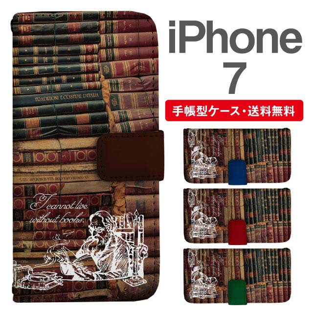 スマホケース 手帳型 iPhone7 アイフォン 携帯ケース カバー 送料無料 本棚柄 agesugi_ssm