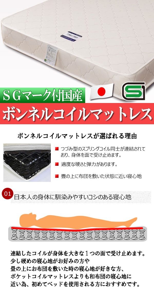日本製 ヘッドレス フロアベッド SGマーク付き ボンネルコイル マットレス ダブル ベッドフレーム 脚付き マットレス 国産(代引不可)【送