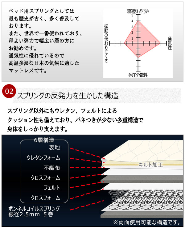 ●マットレス主材/1.9mmポケットコイルスプリング(コイル数720個)、40tブロックウレタンフォーム、